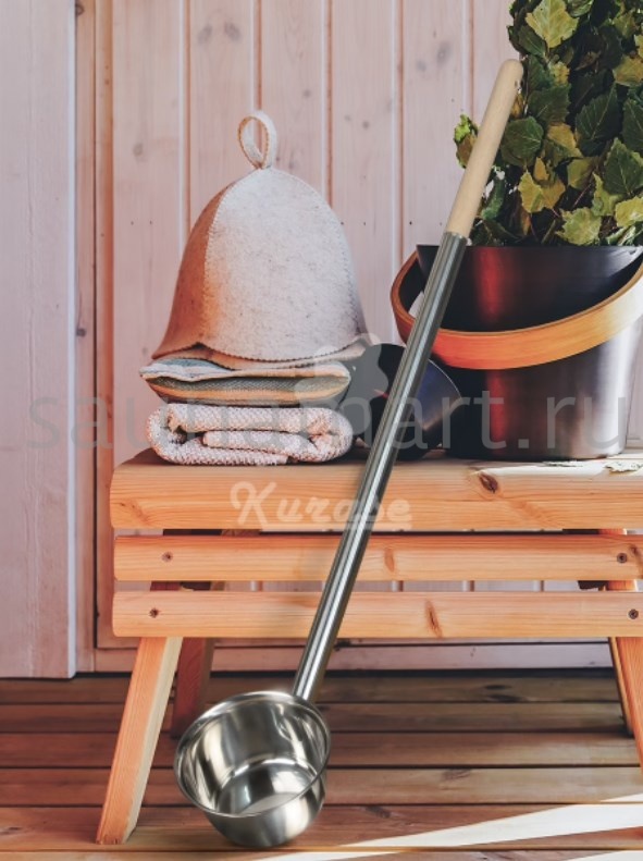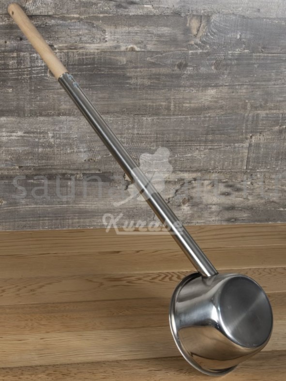 Объем 500 мл. Длина банного инвентаря 70 см, диаметр ковшика 12 см. Ручка выполнена и дерева бук, низкой теплопроводности. Длинная ручка позволит не приближаться к раскаленной печи. Для максимальной защиты рук от термического воздействия применяйте специальные войлочные рукавицы для бани. Металлическая часть ковша выполнена и полированной нержавеющей стали, что придает ковшу эстетичный внешний вид и предотвращает образование ржавчины, что значительно увеличивает срок службы изделия.