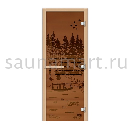 Дверь для сауны Экодорс 1900х700 Банька в лесу (бронза)