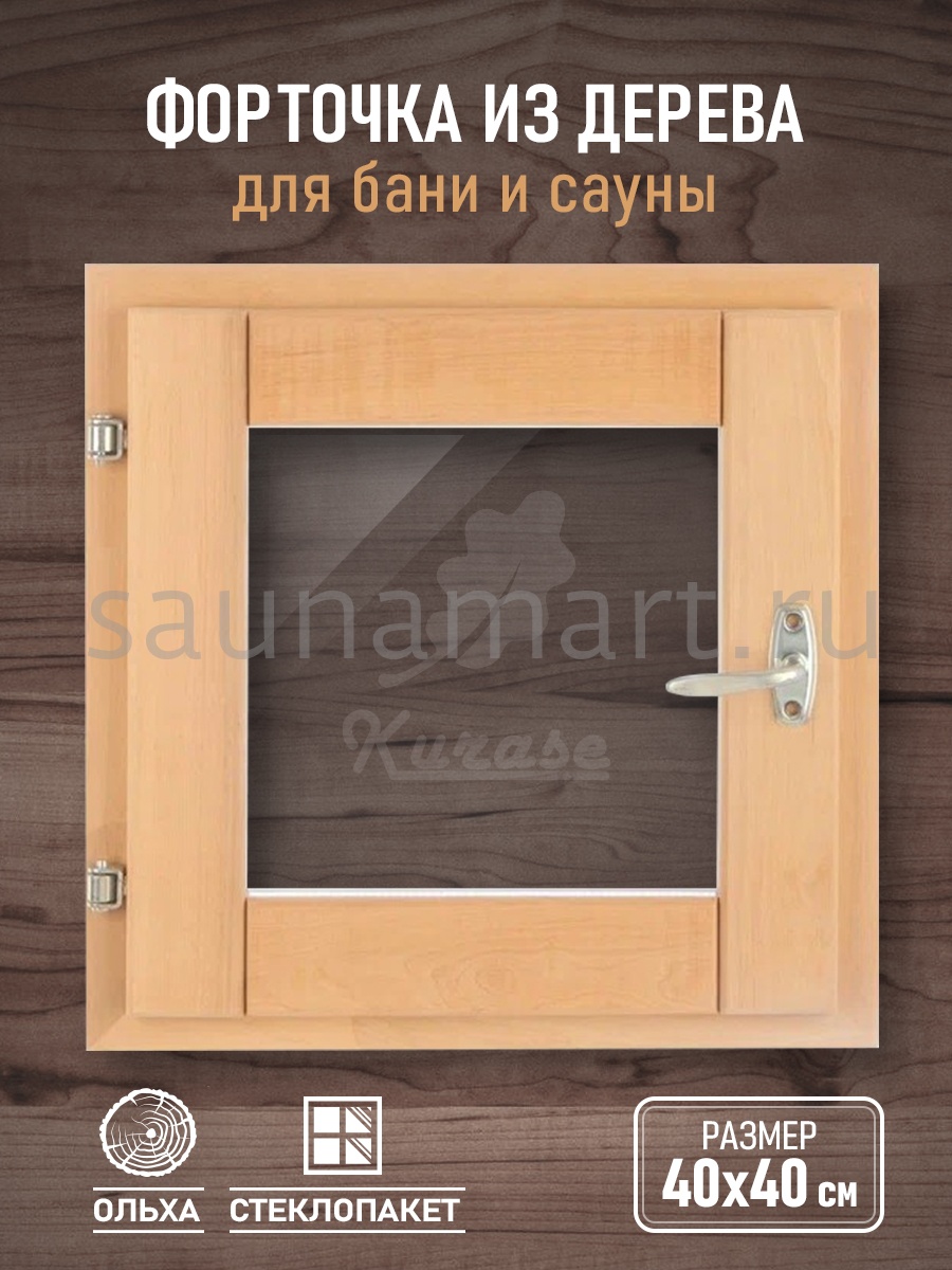 Окно для бани из ольхи. Форточка для бани 30х40 см. Однокамерный стеклопакет. Окошко из прозрачного стекла. Деревянная рама с фурнитурой в комплекте: петли, ручка и затвор. Банное остекление готово к установке нужно только прикрутить ручку. Маленькое окно в парилку снижает теплопотери, обеспечивает проветривание, вентиляцию и поступление дневного света. Деревянное окно необходимый атрибут в русской бане, как дополнение к системе воздухообмена. Одновременное открытие банной двери и окна образует сквозняк, позволяющий обеспечить тщательное проветривание, для сохранности и долговечности внутренней отделки стен, пола, потолка, печи и полок в бане. Оконная рама из лиственных пород, не выделяющих смол, прекрасно переносит условия высокой влажности и температуры, демонстрируя: влагоустойчивость, устойчивость к гниению и образованию грибка. Деревянная форточка может быть использована для строительства и ремонта гаража, дачного туалета и душевой, дачного домика.