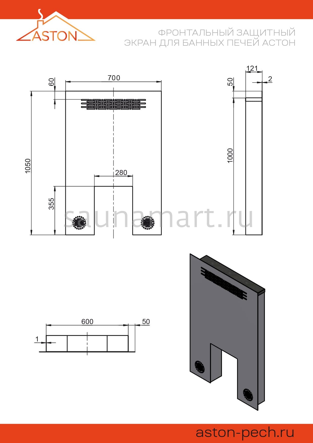 Фронтальный защитный экран ASTON S 120мм — надежное решение для безопасной эксплуатации банных печей. Обеспечивает защиту прилегающих поверхностей от теплового воздействия.