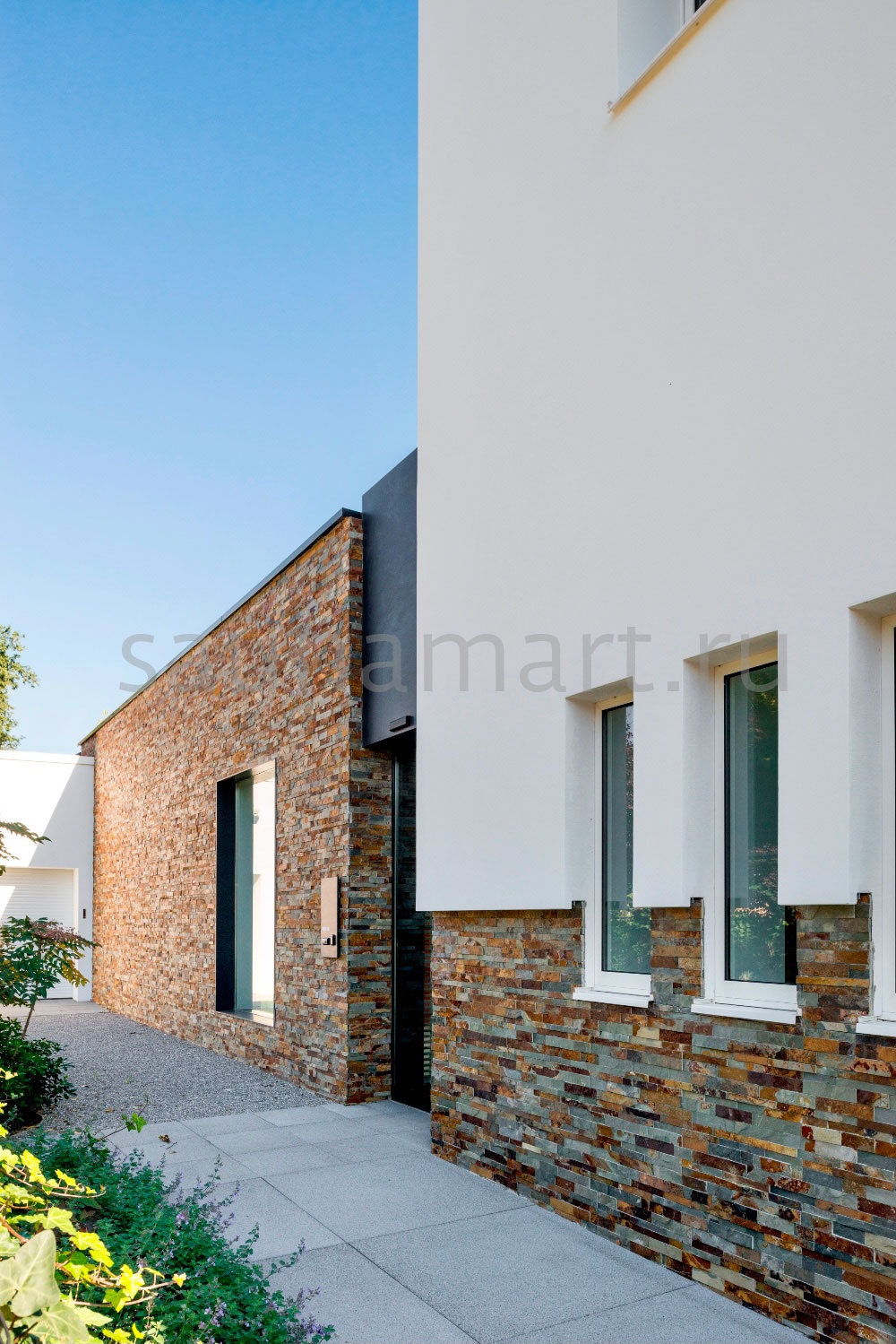 Мультиколорная гамма сочетает теплые и холодные тона в естественных природных комбинациях. Натуральный сланец обладает слоистой структурой, устойчив к влаге и перепадам температур. Идеален для создания акцентных стен в современных интерьерах и эффектных фасадных решений.