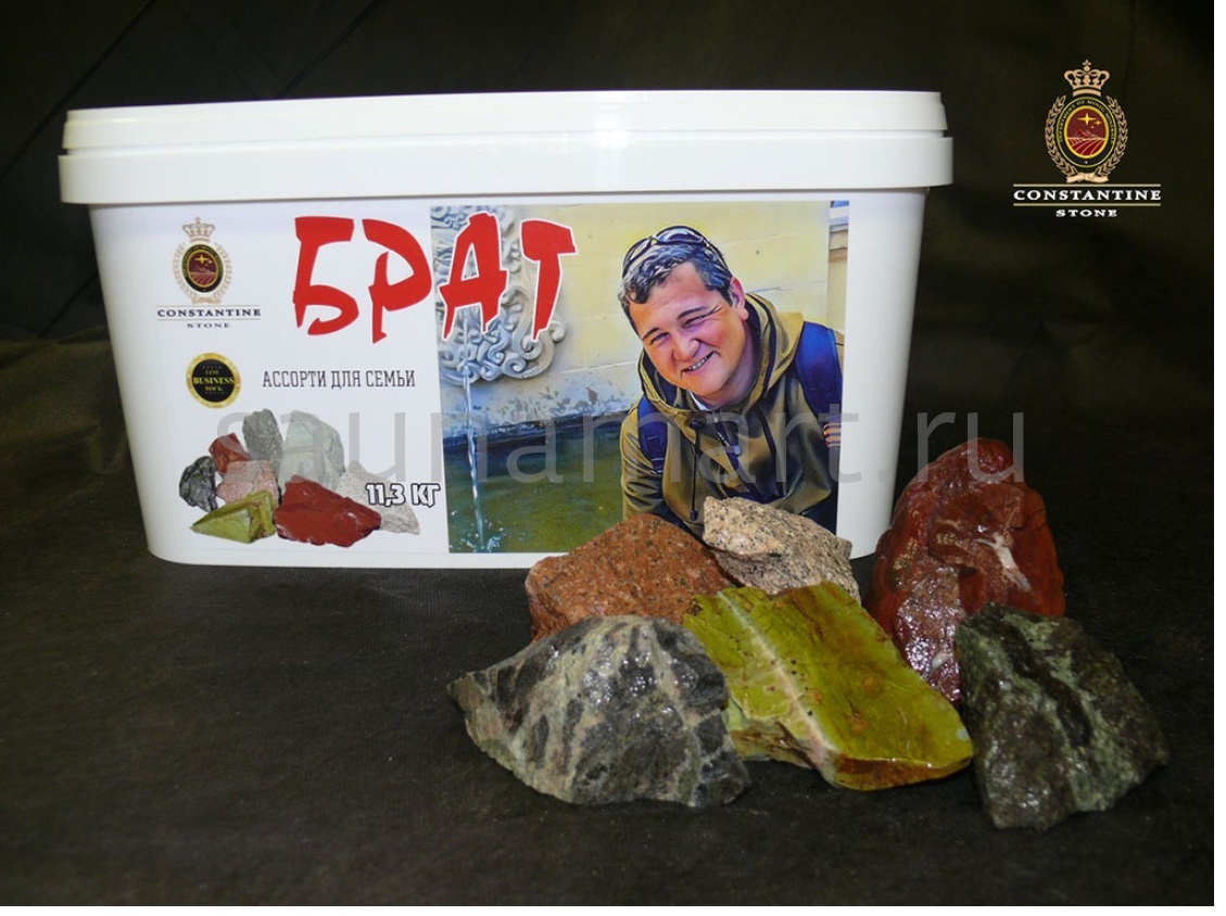 БРАТ Ассорти для семьи участвуя в генерации пара, горячие габброиды и метабазальты способствуют релаксации организма, укрепляют иммунную систему. Красная яшма облегчает лихорадку, эпилепсию, салатовая яшма средство от бессонницы, ночных кошмаров.