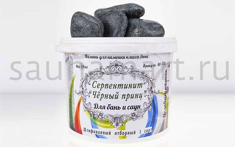 Камни Серпентинит Черный принц шлифованный фр. 80-130мм уп. 20кг.