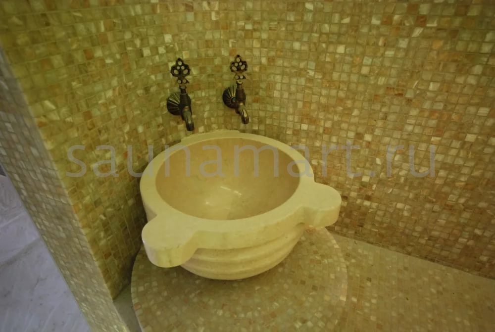 Курна – элемент интерьера турецкой бани, она используется для омовения. В курну без слива вода поступает напрямую из смесителя и изящно выливается через край. Мраморная чаша устойчива в условиях повышенной влажности, а это значит, что она прослужит Вам долгие годы. Курна Камнирус КМ08  имеет утончённую округлую форму. Она устанавливается вплотную к стене. Такая деталь сможет создать особую этническую обстановку и прекрасный микроклимат в Вашем хамаме.