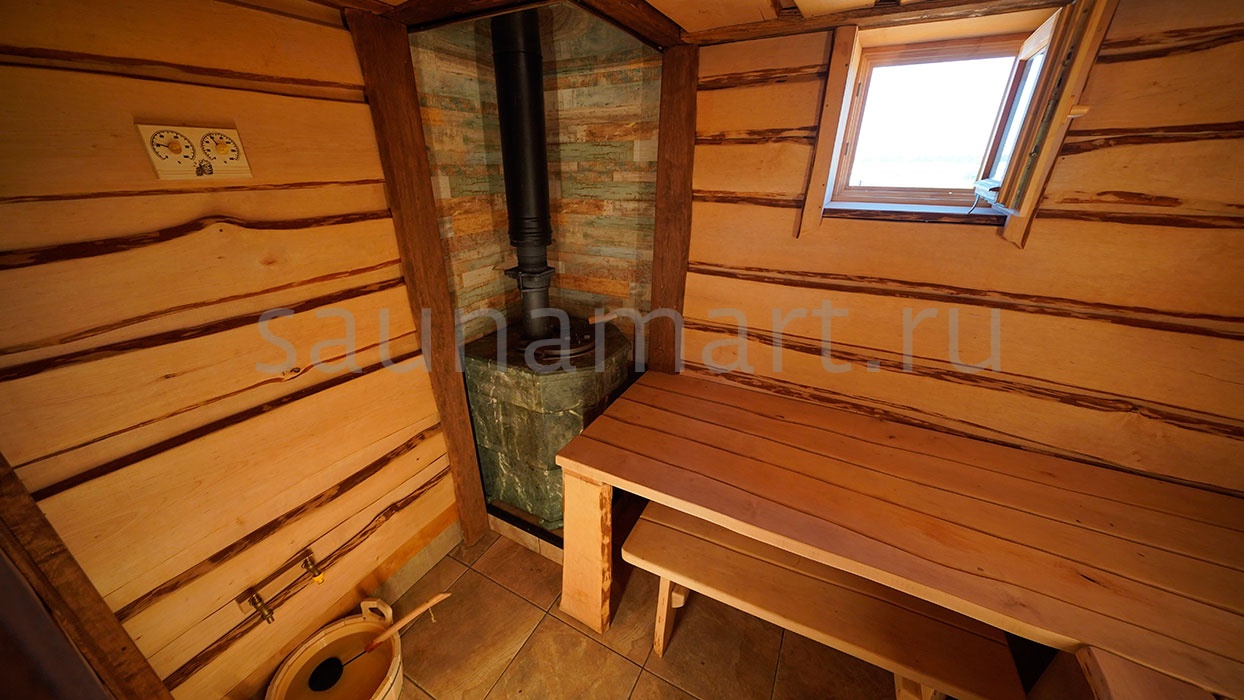Облицовка «Классика Змеевик» для печи AVANGARD 24 М/П представляет собой верхнюю секцию высотой 790/40 мм из натурального змеевика. Печь оснащена 56-кг пароиспарителем с увеличенной рабочей площадью и системой рассекателя пламени для оптимального нагрева.