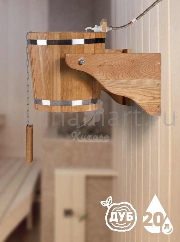 Обливное устройство  для бани и сауны. Объем 20 литров. Материал изготовления - древесина дуба. Внутренняя вставка из нержавеющей стали предотвращает появление грибка и ржавчины.