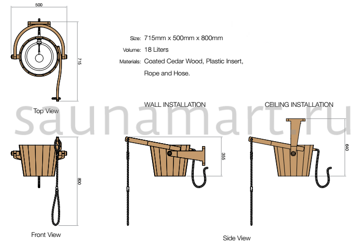 Обливное устройство SAWO 393-D выполнено из древесины премиум-класса.