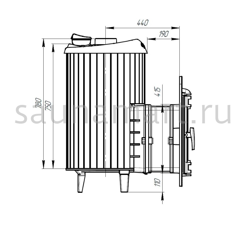 Практичная и компактная модель. Ламели по периметру внешней каменки не только обладают хорошими теплонакопительными свойствами, но и придают печи оригинальный внешний вид.
