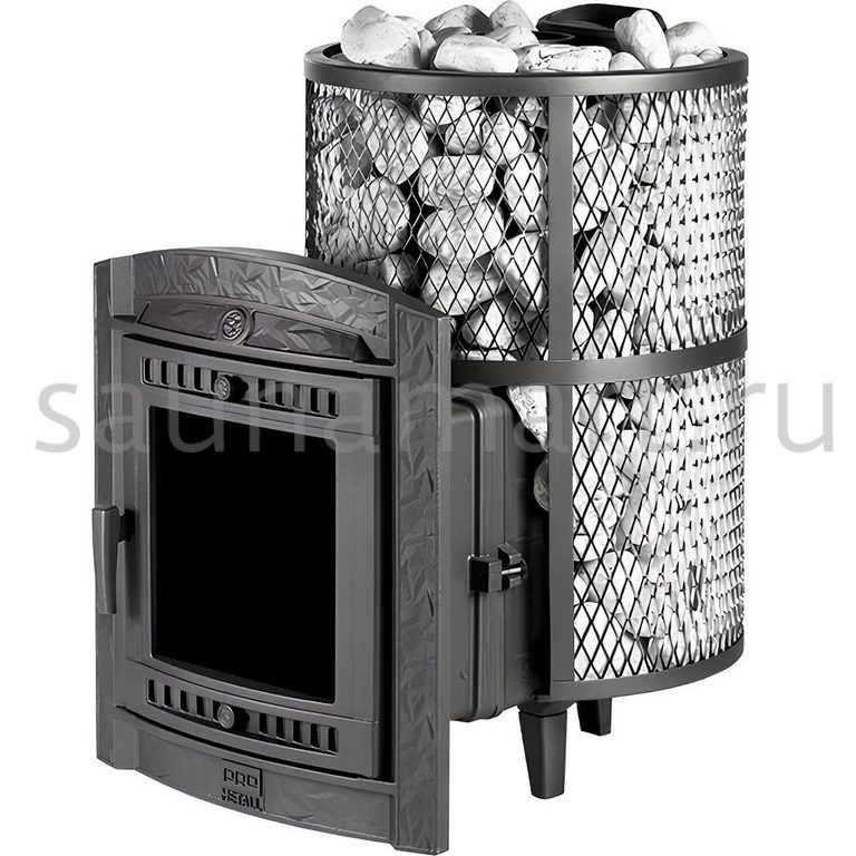 Компактная и экономичная модель. Кожух печи изготовлен в виде сетки из стали и полностью заполняется природными камнями, обеспечивая высокую динамику нагрева парильного помещения.