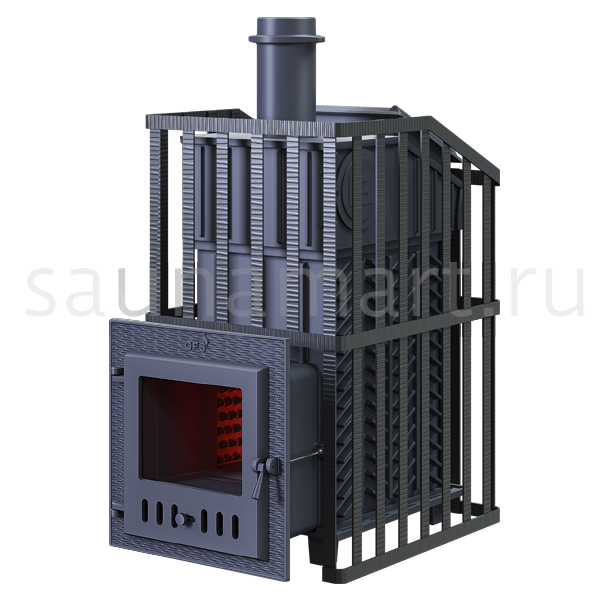 Печка Гефест Ураган может быть модернизирована до полноценной печи для русской парной. Для этого кованная сетка заменяется на каменную облицовку без необходимости разборки отопителя.