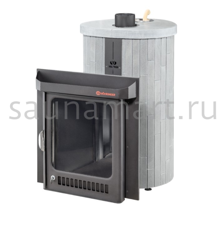 Печи VOHRINGER с дровяной каменкой, у которой вся топка окружена большой массой камней, сильно разогревается, а дров уходит немного, благодаря полному сжиганию дымовых газов с помощью бокового и верхнего горения. Использование эффекта «Vortex», позволяет извлечь всю энергию и направить её на нагрев большого количества камней.