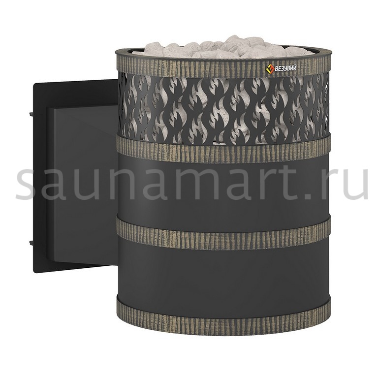 Кожух из стального листа и кованых стальных колец предназначен для обеспечения конвекции устройства открытой каменки и дополнительно защищает парящихся от жёсткого инфракрасного излучения. В верхней части кожуха для усиления движения воздуха сделаны прорезные отверстия в виде языков пламени. Чугунные детали - колосник и пламегаситель, не меняют своей геометрии во время топки, хорошо противостоят высокой температуре. Зольный ящик совкового типа отлично подходит для уборки печи и удаления золы. Чугунный пламегаситель является съёмным элементом, что облегчает прочистку печи. В то же время, пламегаситель зафиксирован от продольного перемещения, что является гарантией единственно правильного положения элемента в печи. В печи обеспечена возможность горения дров в тоннеле. Тоннель выполнен из стали 4 мм, а дно тоннеля расположено на одном уровне с дном топки для беспрепятственного перемещения углей в глубь топки.