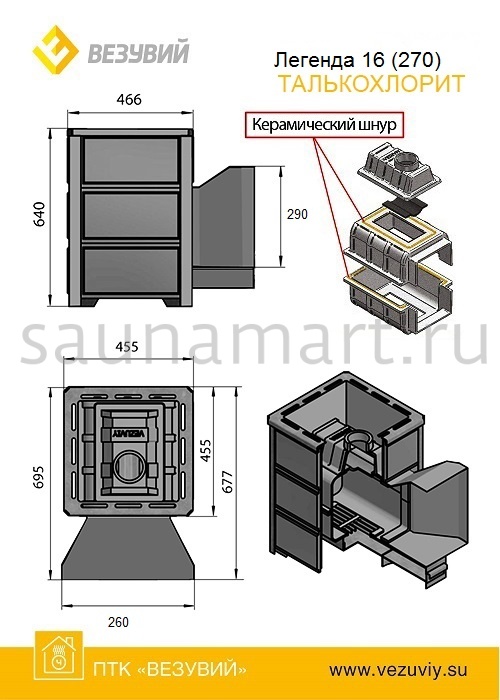 Печь дровяная ВЕЗУВИЙ Легенда 16 талькохлорит дверца 270
