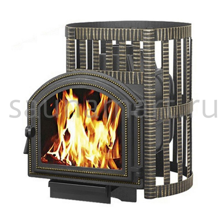 Чугунная печь для бани Везувий Легенда Ковка 16 рассчитана на парные объемом от 8 до 18 м3. Топка образована тремя частями, изготовленных из литого высококачественного чугуна. Части соединены болтами, в стыки проложен керамический шнур, выдерживающий температуру до 1200°С, поэтому топка абсолютно герметична и безопасна при эксплуатации. Толщина элементов топки составляет минимум 12 мм, поэтому печь способна выдержать большие перепады температуры и не лопается при попадании большого количества воды.