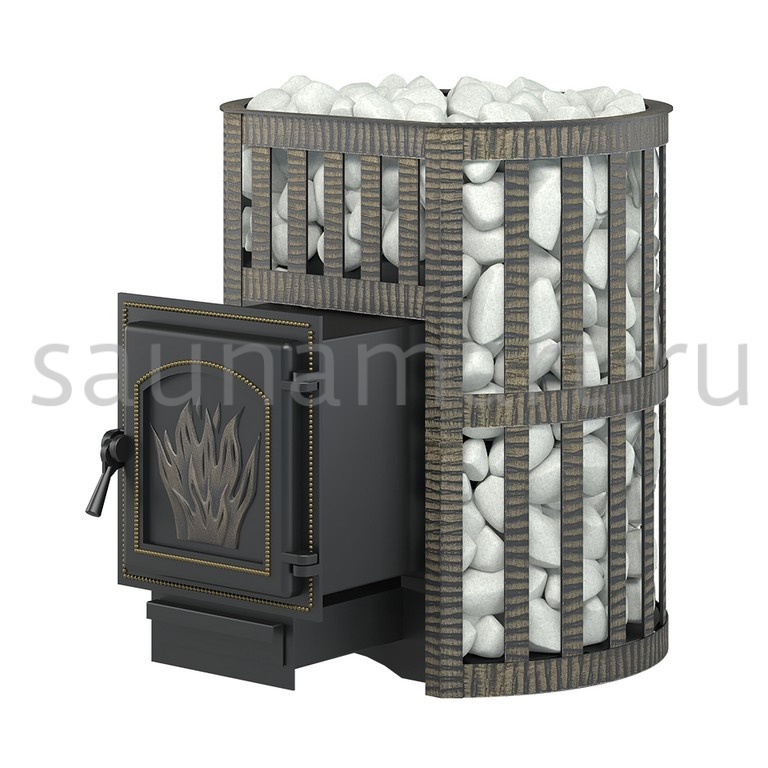 Банная чугунная печь Легенда Ковка 22 (271) укомплектована чугунной герметичной дверцей Везувий 271. Конвекционно-вентилируемый кожух "Ковка" изготовлен из металлической текстурированной полосы, покрашенной термостойкой краской и покрытой патиной «Бронза».