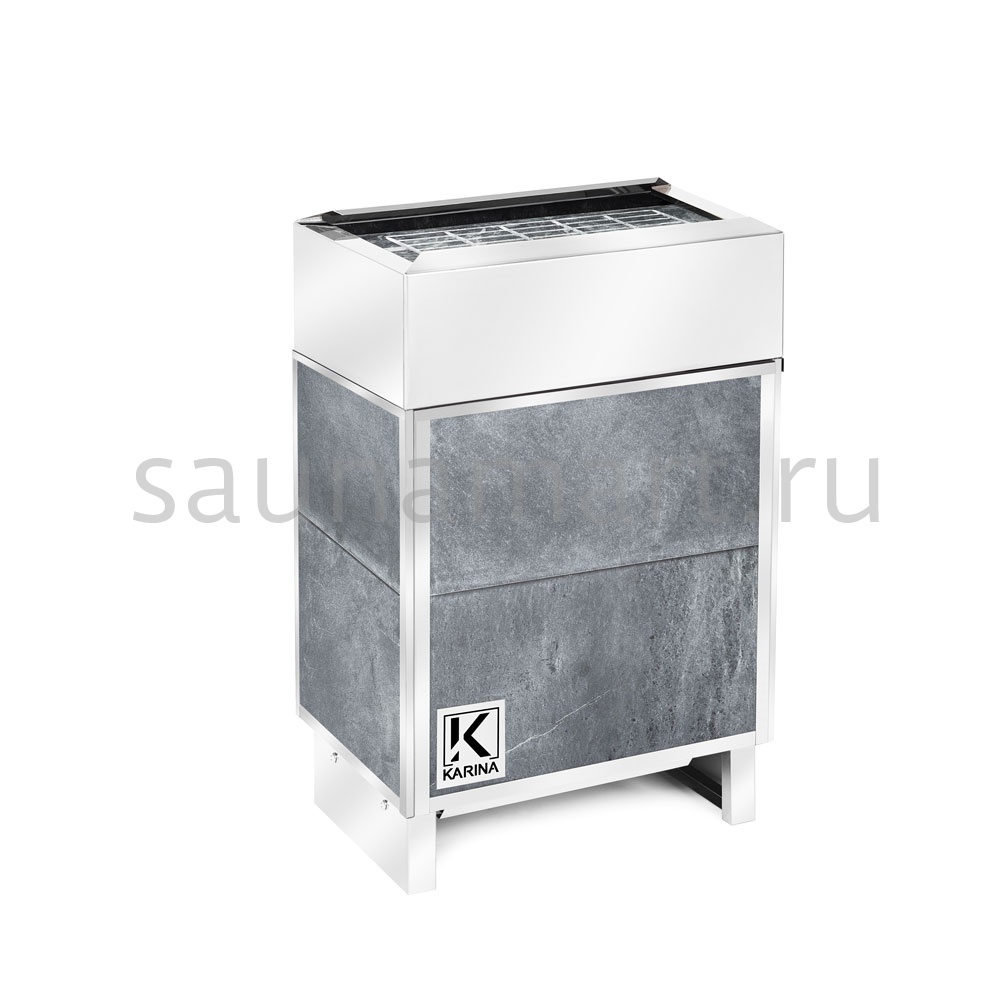 Электрокаменка с монтажом напольного типа подключается к сети с напряжением 220 В. Печь KARINA Elite не укомплектовывается выносным пультом, его нужно будет приобрести дополнительно.