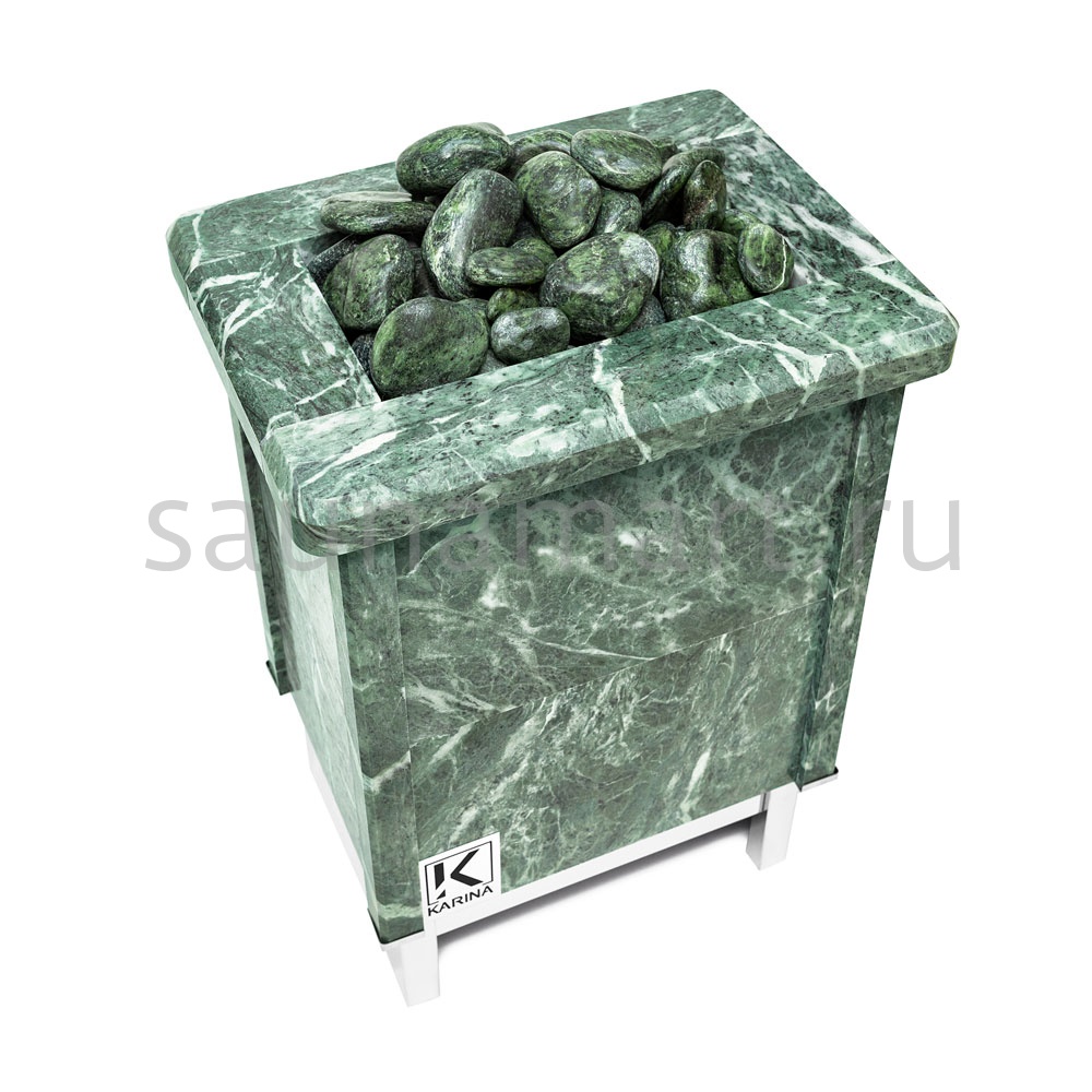 Электрическая печь KARINA Quadro 9 mini Змеевик представляет собой электрокаменку, полностью облицованную натуральным камнем, и способной прогреть семейные бани и сауны объемом до 14 м3.
