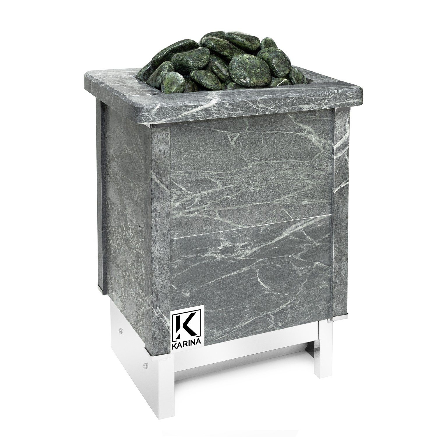 Электрическая печь KARINA Quadro 6 Талькохлорит – это электрокаменка, облицованная натуральным камнем со всех сторон, и обладающая мощностью оптимальной для домашних и небольших бань и саун объемом до 7 м3.