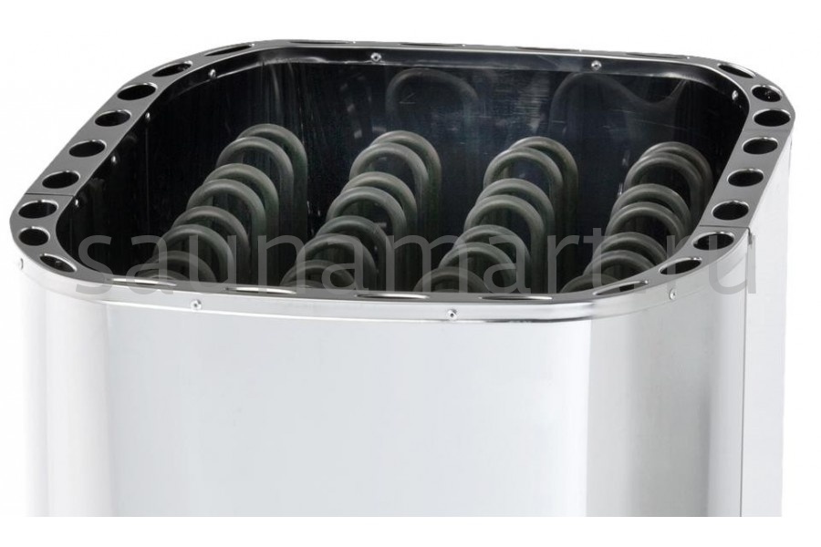 Если вы хотите купить надёжную и функциональную модель для установки в коммерческой парной, следует обратить внимание на электрокаменку Savonia SAV-90NS-Z. Мощности данной печи хватит для быстрого нагрева помещения объёмом 8-14 кубических метров. Savonia SAV-90NS-Z выполнена по принципу открытой каменки и вмещает в себя от 40 до 50 кг камней. Подливая на камни воду или отвар любимых трав вы без труда превратите свою сухую сауну в превосходную баню с лёгким мелкодисперсным паром. Внешняя часть и каркас электрокаменки произведены из нержавеющей стали. Внутри печь усилена оцинковкой. Каменка Savonia SAV-90NS-Z имеет напольную установку. Ножки печи регулируются. Обращаем ваше внимание, что подключение производится к сети 380В. Температура и таймер работы электрокаменки устанавливается заранее при помощи удобного выносного пульта управления.