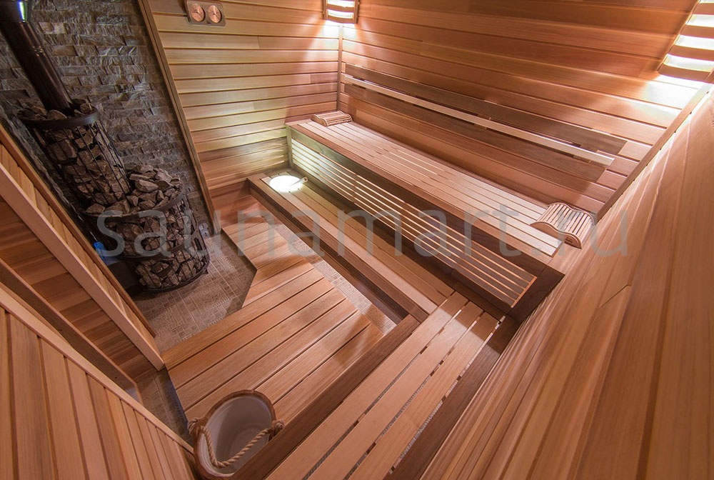 Полок из канадского кедра – это банный настил, изготовленный из древесины западного красного кедра, произрастающего в Канаде. Главные преимущества перед другими породами (липой, осиной, абашем) заключаются в уникальной устойчивости к влаге и перепадам температур благодаря природным антисептикам, которые предотвращают гниение и образование грибка без химической пропитки. Кедр обладает естественной легкостью, низкой теплопроводностью (не обжигает кожу при 90-100°C) и высокой долговечностью (срок службы 15-20 лет даже в коммерческих саунах). Его отличительные особенности – розовато-коричневый оттенок, шелковистая текстура и стойкий хвойный аромат с терапевтическим эффектом, который сохраняется десятилетиями. Цена на 25-40% выше, чем у липы сорта «Экстра», и в 2-2.5 раза превышает стоимость термоосины, что обусловлено редкостью сырья, сложностью транспортировки и премиальными эксплуатационными свойствами. Рекомендуется для элитных СПА-комплексов и аллергиков, так как не выделяет смолу при нагреве.