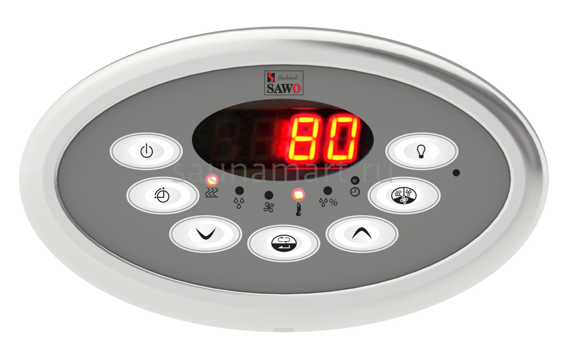 Пульт управления сауной SAWO Innova Classic S представляет собой простую и удобную модель с необычным дизайном корпуса. Его круглая форма выполнена в хай-тек стиле и отлично гармонирует с интерьером современной сауны. Температурный диапазон настроек составляет от 40 до 110 градусов. Время непрерывной работы варьируется от 4 до 24 часов.