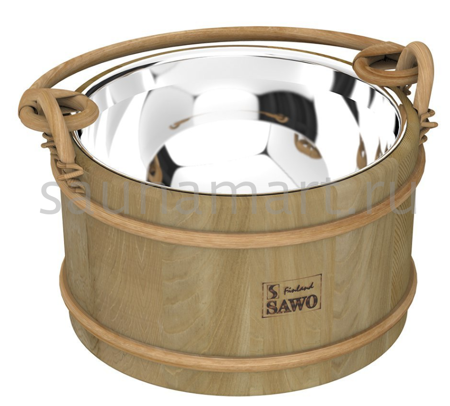 SAWO Ведро деревянное 7 л. со вставкой из нержавеющей стали Ведро в бане - вещь крайне важная и жизненно необходимая. В ведре запаривают веники, настаивают травы и фитосборы, хранят и отстаивают воду.