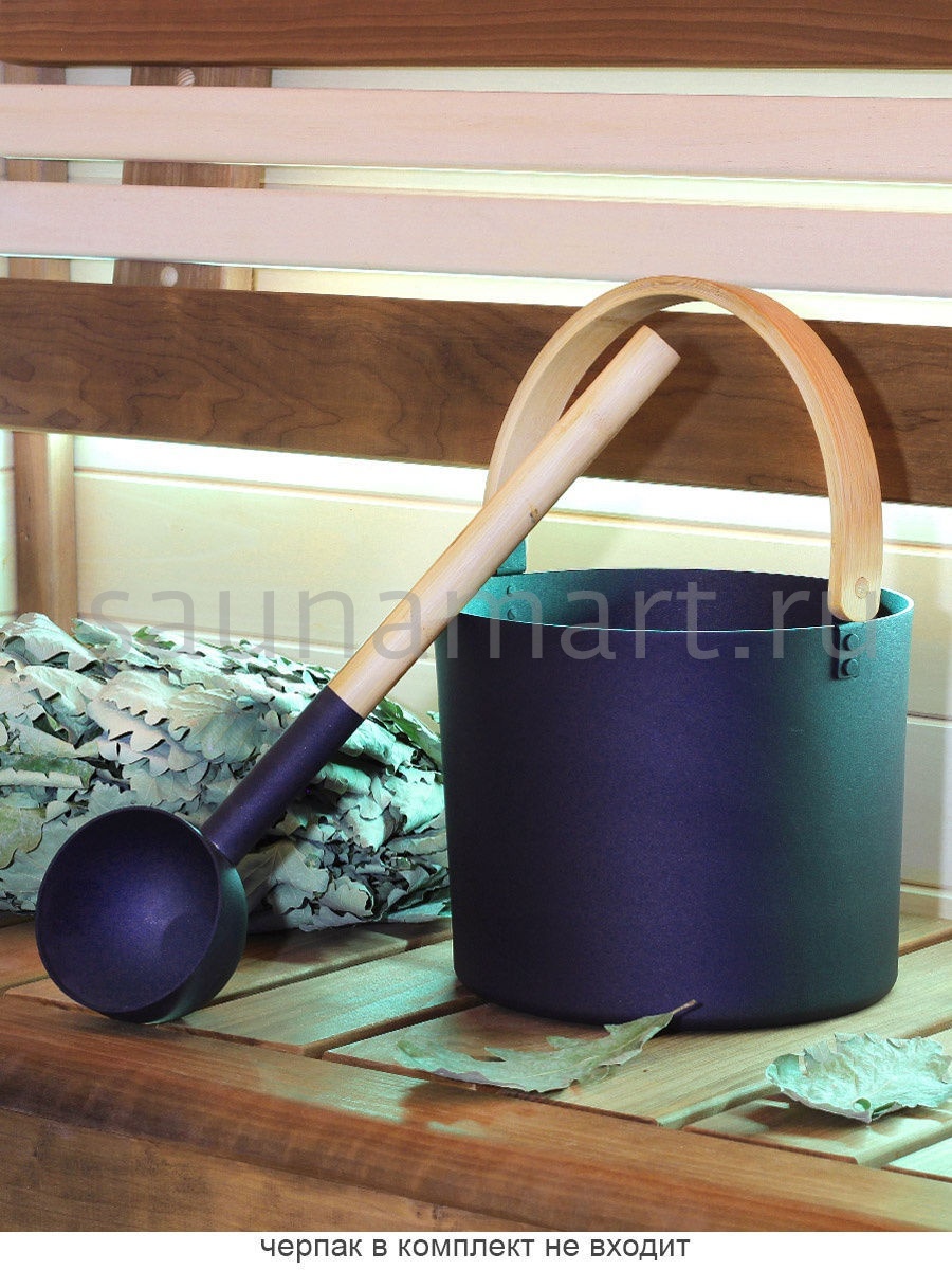 Ведро для бани и сауны выполнено из алюминия и термообработанного бамбука.
