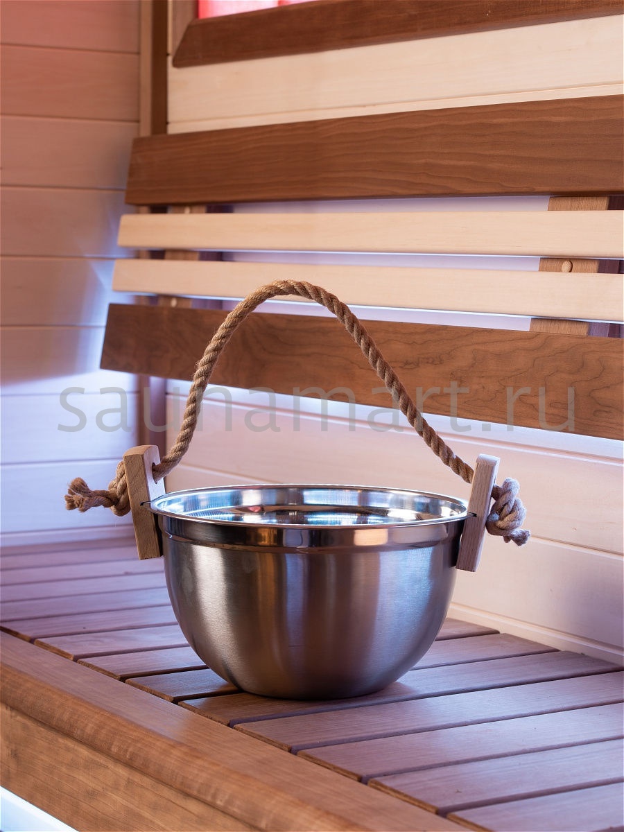 Шайка из нержавеющей стали - замечательный аксессуар для сауны или бани, который позволит Вам равномерно и аккуратно подливать воду на камни без риска обжечься.