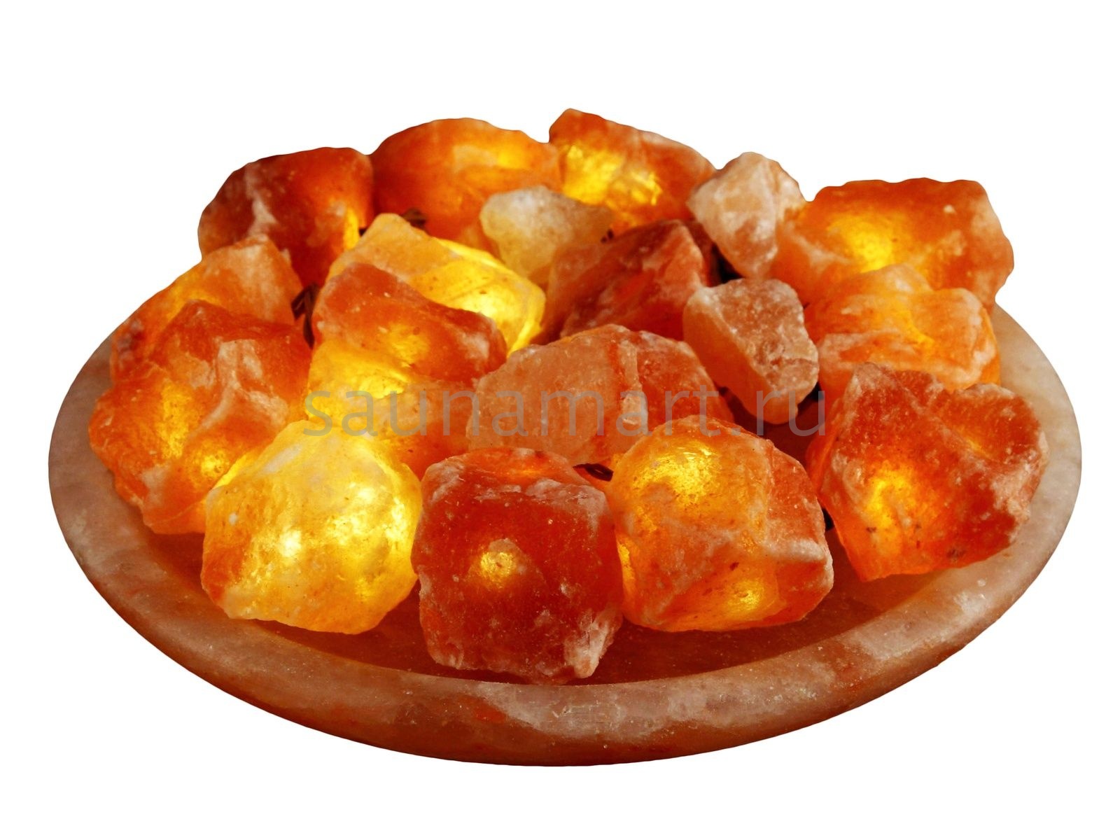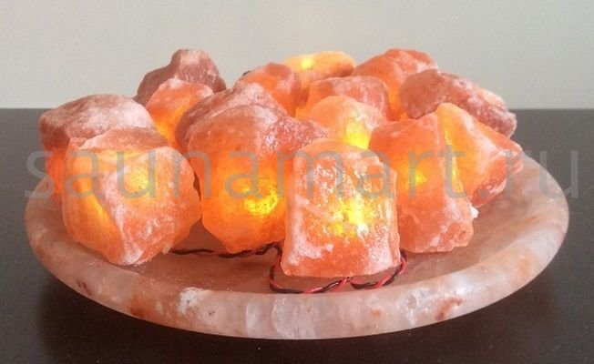 Соляная лампа Огненная ЧАША - из 15 камней на блюде