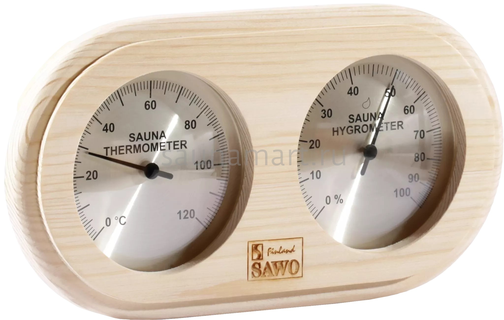 SAWO Термогигрометр 222-THР Закругленный термогигрометр Sawo отличается надёжностью и долговечностью. Он позволяет одновременно контролировать влажность и температуру в сауне. Корпус прибора выполнен из пиломатериалов лиственных пород. Термогигрометр впишется в интерьер любой сауны, украсив его. Температурная шкала термометра от 20 до 120 градусов. Материал: сосна Производитель: Финляндия