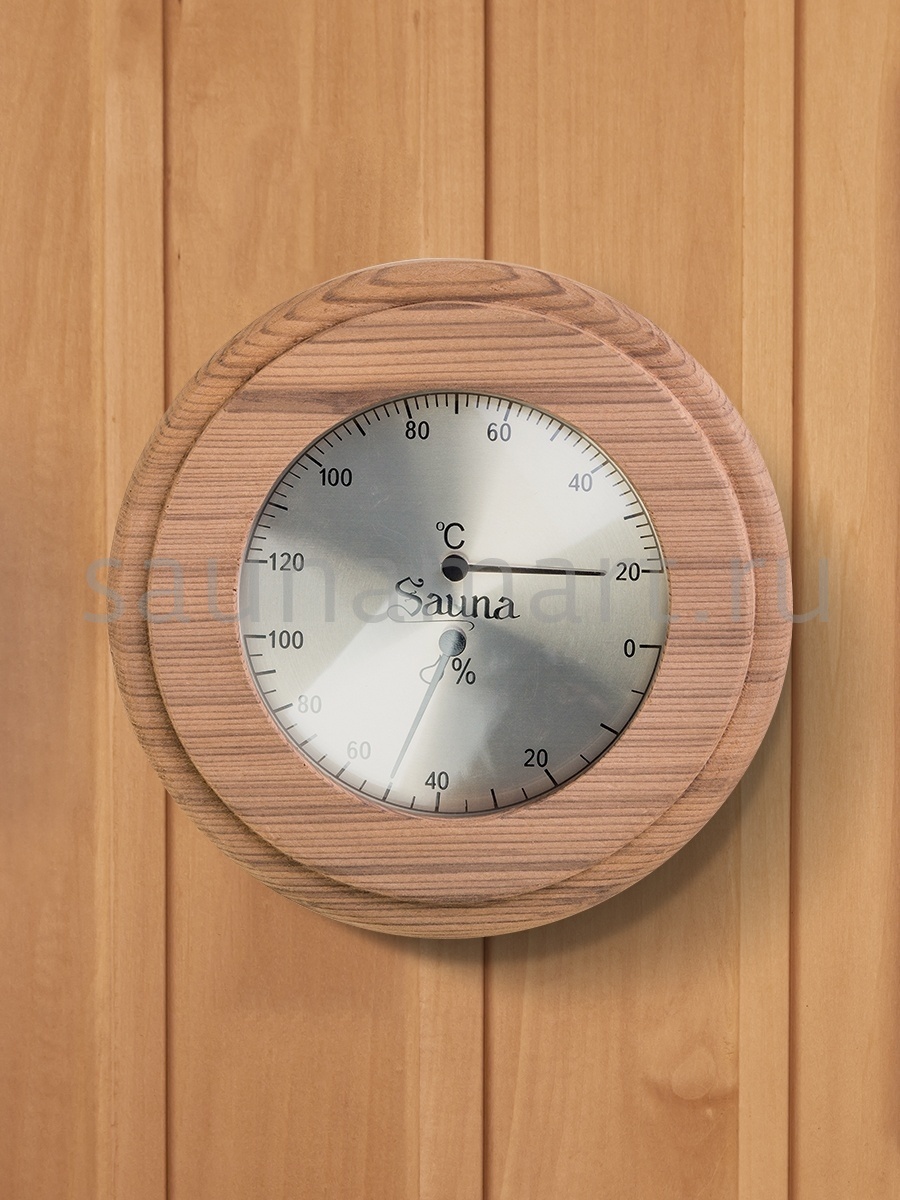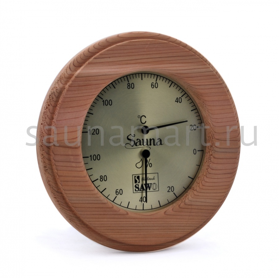 Термогигрометр SAWO 231-ТНD отличается надежностью, долговечностью и практичностью. Корпус прибора выполнен из кедра, очень прочного материала, который не выделяет смолы. Диаметр 18,5 см. В широкой раме из кедра находится круглый циферблат, под термостойким стеклом, разделенный на 2 шкалы. Градуировка шкалы гигрометра варьируется в пределах от 0 до 100 %. Градуировка шкалы термометра варьируется в пределах от 0 до 120 градусов по Цельсию. Предусмотрена возможность калибровки прибора. Термогигрометр SAWO прекрасно впишется в интерьер любой бани или сауны и  удачно дополнит интерьер. Термогигрометр Саво подойдет для использования в любом парильном помещении, как в условиях русской бани, финской сауны так и хамама. Помните,  чтобы проведённое в парной время оказало благоприятный эффект на здоровье и самочувствие, необходимо тщательно соблюдать температурный режим парения и режим влажности. Высокий стандарт качества SAWO гарантирует надёжность и точность измерений термо-гигрометра.