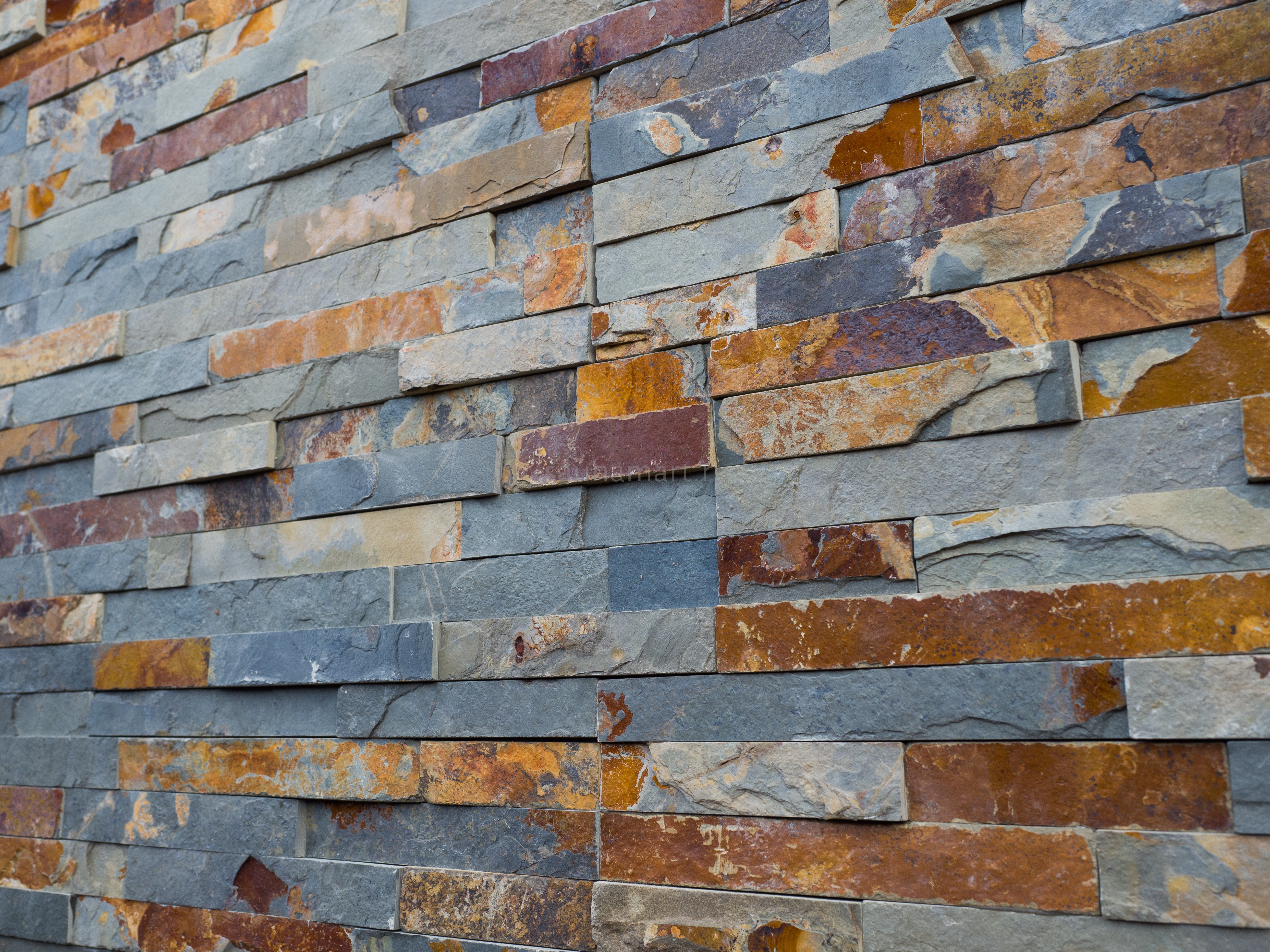 Мультиколорная гамма сочетает теплые и холодные тона в естественных природных комбинациях. Натуральный сланец обладает слоистой структурой, устойчив к влаге и перепадам температур. Идеален для создания акцентных стен в современных интерьерах и эффектных фасадных решений.