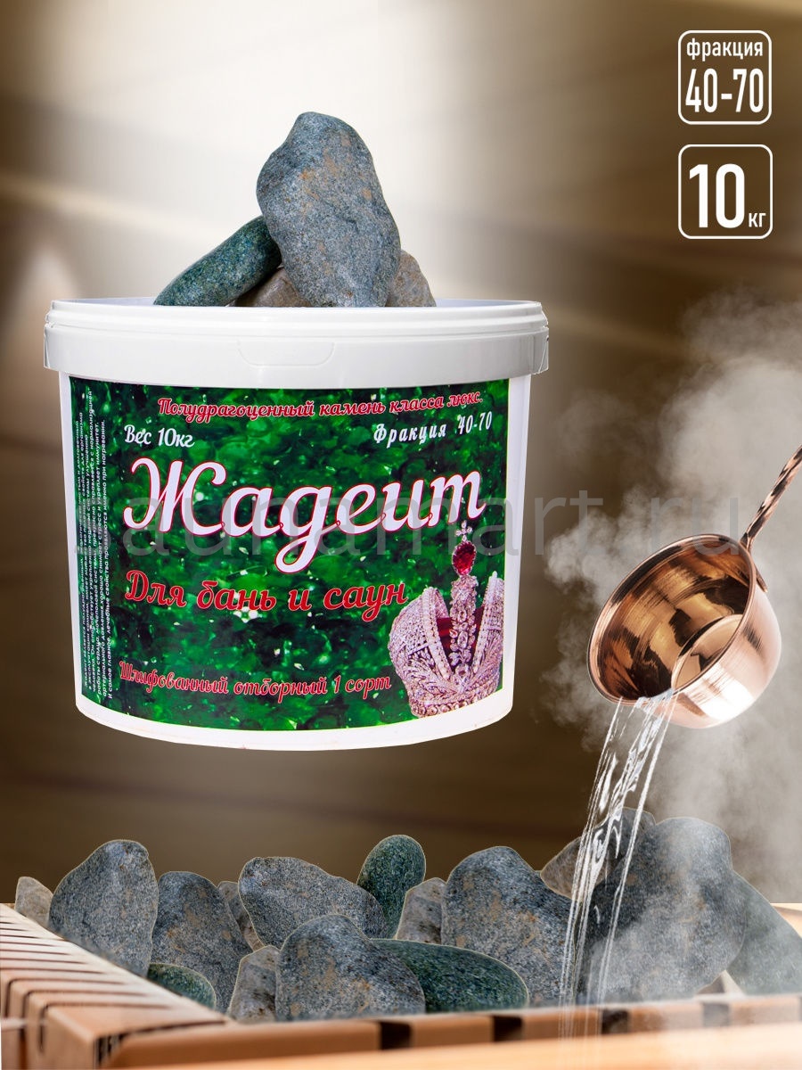 Применение жадеитовых камней в Вашей печи принесёт несомненную пользу для здоровья. Помимо этого, камни выглядят очень эстетично и красиво. При контакте с водой, жадеит выделяет небольшое количество метакремниевой кислоты, тем самым, наделяя получающийся пар целебными свойствами. Посещение парной, где используются эти полудрагоценные камни, окажет положительный эффект на Вашу кожу, кровеносную систему и общее самочувствие. Колотые камни прекрасно подходят для заполнения резервуара печи в сауне. Жадеит содержит в десятки раз меньше тяжелых металлов, чем его аналоги. Если Вы окатите жадеит горячей водой, то вы заметите уникальную особенность: зеленый цвет камня резко собирается в центр, а затем постепенно камень возвращается к своему первоначальному виду. Жадеит позволяет не боясь, лить на него воду часто и много раз. При этом, растрескивания камня опасаться не стоит. При нагреве камня не происходит выделения вредных химических веществ. Шлифованный. 10 кг. Фракция 40-70 мм.