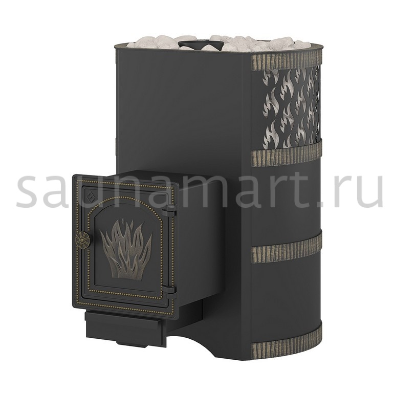 Стальная банная печь серии Лава усовершенствованной конструкции работает на дровах и предназначена для нагрева пространства парной и получения пара. Печь ВЕЗУВИЙ Лава 22 (ДТ-4) рассчитана на объем парной 12-24 кубометров. Топка печи изготовлена из особо прочной котловой стали марки 09Г2С. Толщина верхней и задней части 6 мм, толщина боковых стенок 4 мм. Топка имеет скошенные углы в нижней части боковых стенок топки. Такая конструкция облегчает уход за топкой, предотвращает высокую тепловую нагрузку на боковые стенки печи и обеспечивает дополнительную жёсткость стенок. Вместе с тем, данная конструкция стенок предполагает направление дров ближе к колосниковой решётке, что обеспечивает полное прогорание топлива.