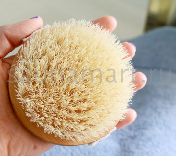 Щетка для сухого массажа и душа с удобной ручкой обеспечивает интенсивное обновление кожи и стимулирует микроциркуляцию.